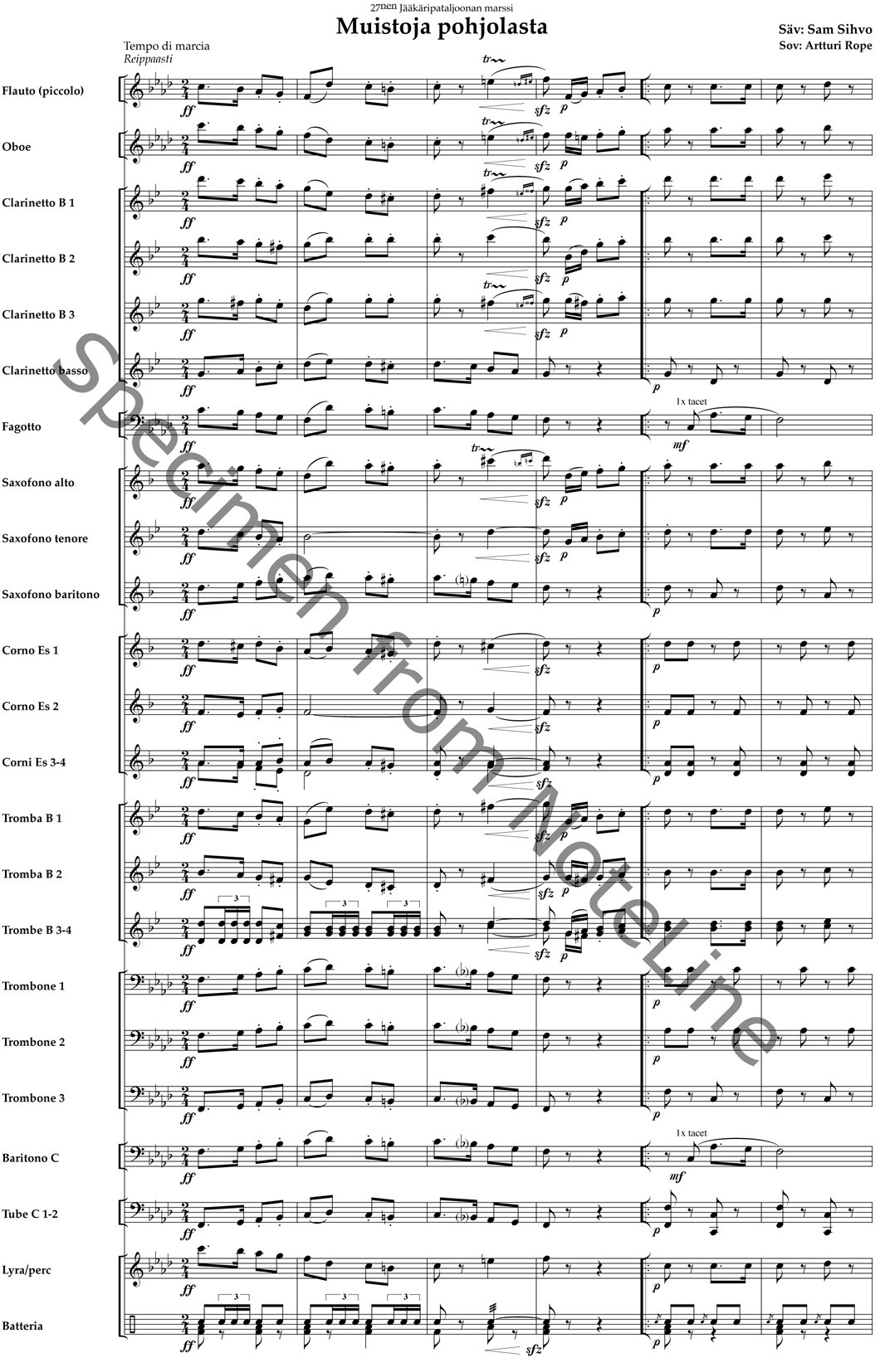 Memories from the North -march Memories from the North (marching band) SKU: 1157 Stock Status: In Stock 35 € Including Tax: 4.16 € Quantity pcs Add To Cart Description We have two Memories from the North available, this one is more traditional arrangement for smaller band. SKU 1158